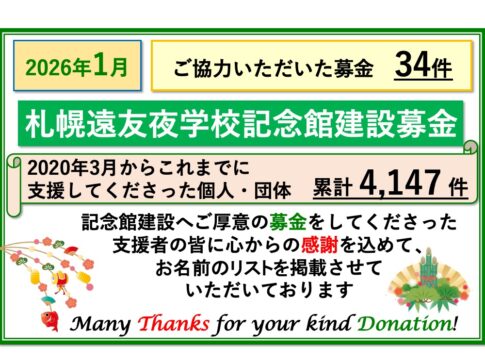 札幌も雪がしんしんと降っています。 皆様如何お過ごしでしょうか。 今月も本会に寄せられた温かいお気持ちをご報告いたします。 目標額へ、また一歩前進です。(2025年11月8日更新) - 【開催報告】歴史散歩・遠友夜学校の時代②-中島公園とその界隈編-