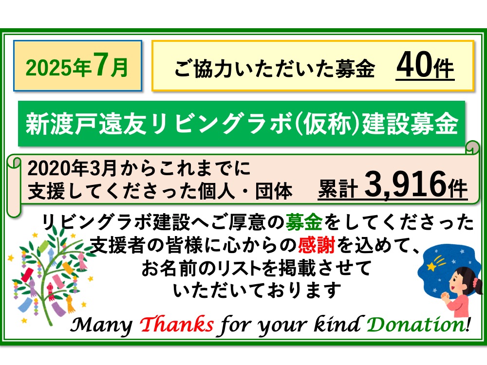活動履歴2025.08.302025.7リビングラボ建設募金Monthly Report ポスト シェア はてブ 送る Pocket 札幌も暑い日が続いております。皆様如何お過ごしでしょうか。 今月も本会に寄せられた温かいお気持ちをご報告いたします。 目標額へ、また一歩前進です。(2025年8月5日更新) 記念館支援者名No.3 2025年7月末 追記4ダウンロード