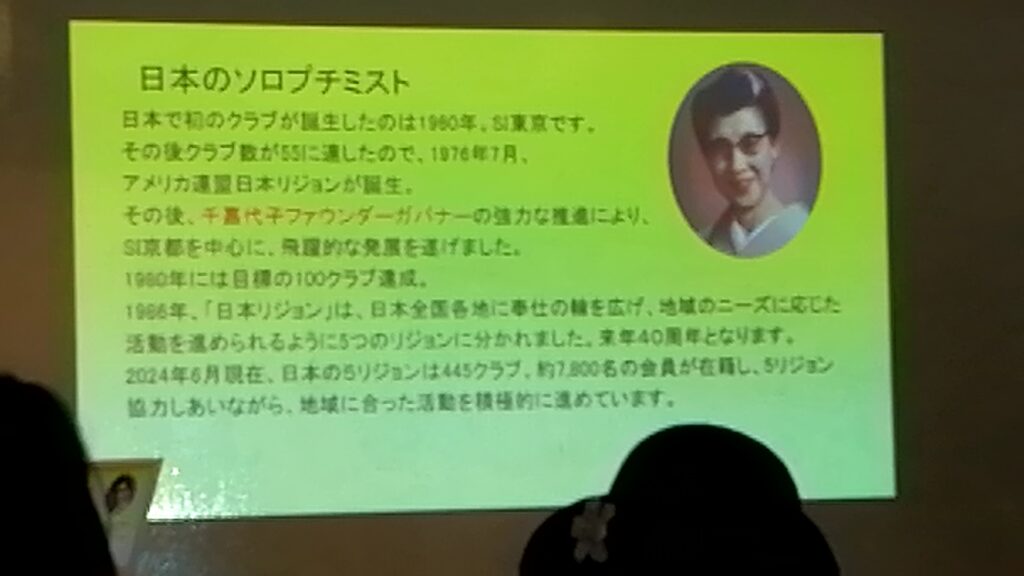 國田さんは、まず国際ソロプチミスト(Soroptimist)について、その歴史と理念をご紹介くださいました。