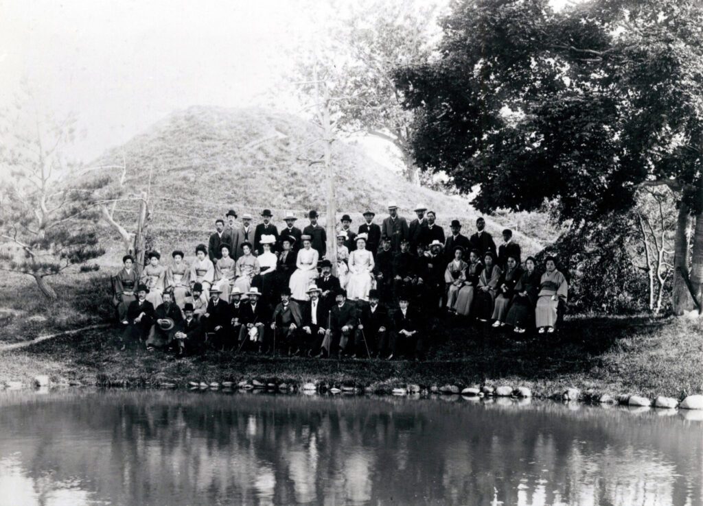 ここは岡田花園の跡地であり、明治42年には新渡戸稲造夫妻を囲む園遊会が開催されたというエピソードが紹介されました。